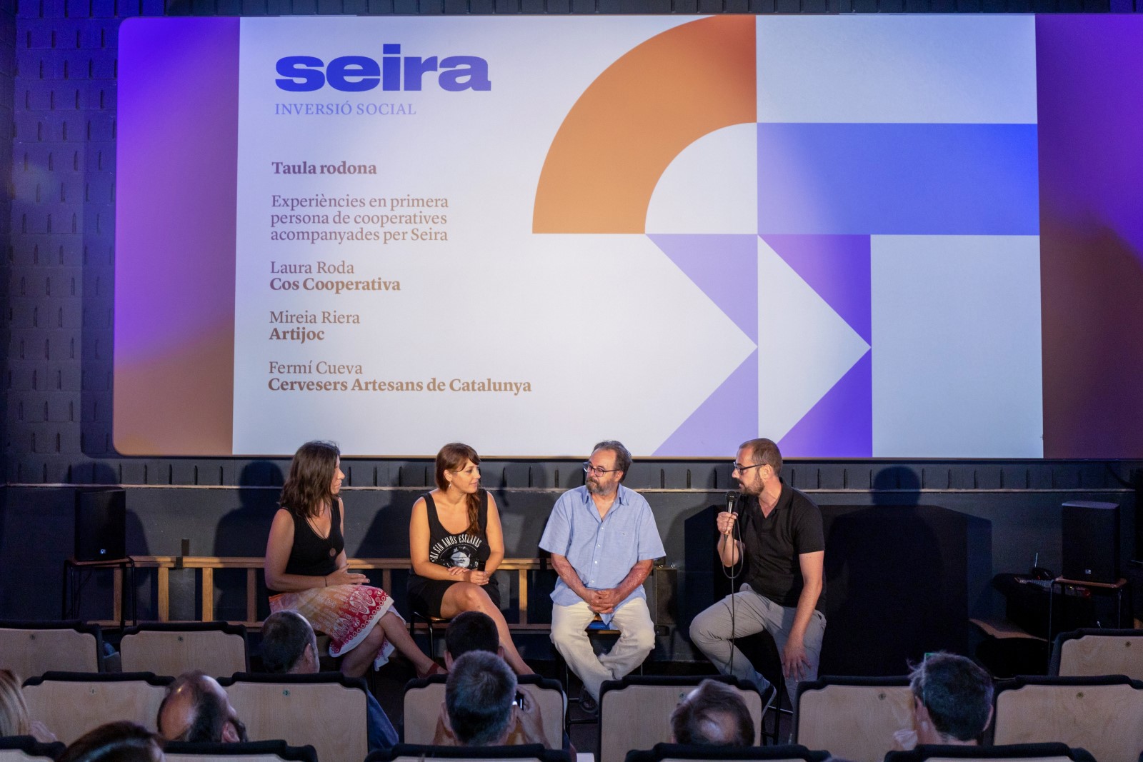 Tras la presentación de #SeiraInversioSocial, tuvo lugar una mesa redonda en la que se expusieron las experiencias de algunas de las cooperativas que se han beneficiado del servicio de apoyo y orientación de Seira. Los ponentes fueron Laura Roda, responsable de contabilidad y gestión de Cos Cooperativa; Mireia Riera, socia y presidenta del consejo rector de Artijoc; y Fermí Cueva, responsable de gestión comercial y proyectos de Cervesers Artesans de Catalunya. Los representantes de las cooperativas destacaron la importancia no solo del apoyo financiero prestado por #SeiraInversioSocial, sino también del acompañamiento y asesoramiento ofrecido por los especialistas en gestión de la entidad.